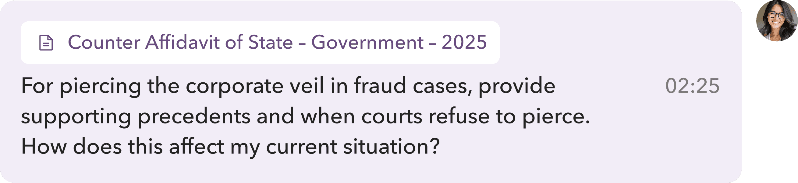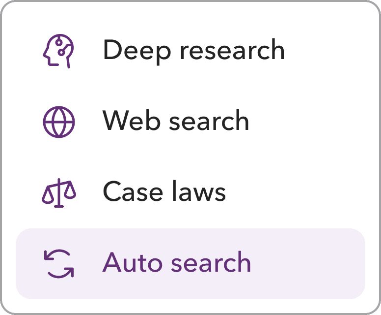 There is a dedicated mode for every occasion, giving you more control over the research intention. Choose from Case Laws, Deep research, web search or keep it at auto and Vettam recognises your need.
