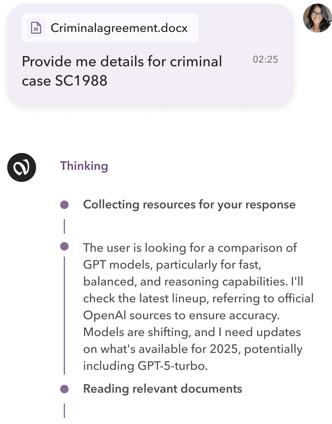 With our unique solution to provide your clear visibility of documents while you chat and find what’s relevant, you can be sure you are always getting the correct references from trusted legal sources.
