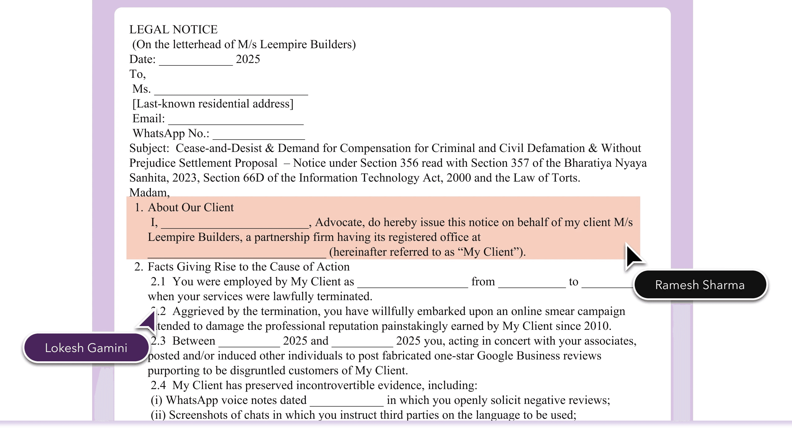 Automate cover pages, signature blocks, and schedules while maintaining your firm's voice and standards across all client deliverables.