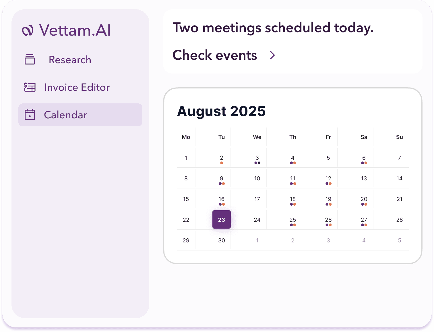 Vettam provides add-on services to counsels to manage their legal operations like invoicing, client management, case management, and calendar.